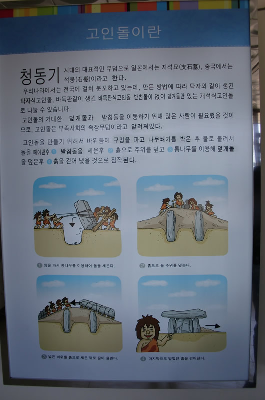 在附近的展覽室裡展示了支石墓的修建的過程